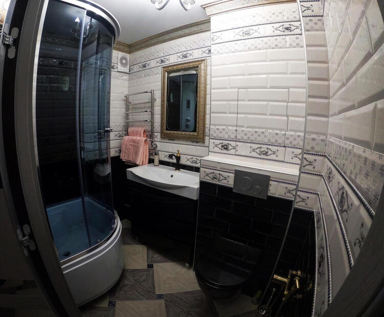 СУПЕР ванная комната с душевой кабиной . Кондиционер , Музыка , Гидромассаж и другие удобства.