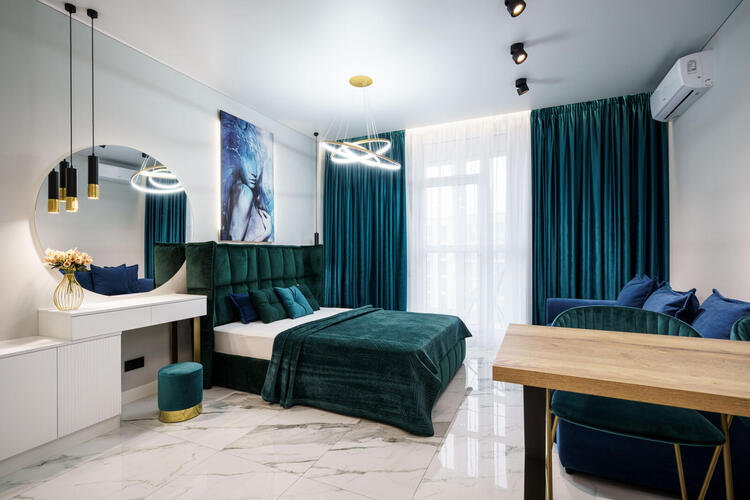 NEW!!! Шикарный Пентхаус для VIP гостей в комплексе Минск Мир. Дизайн-ремонт 2022. WiFi. Шикарные апартаменты с большой угловой ванной. Студия выполнена в романтическом стиле. Для Вашего незабываемого отдыха предусмотрено много подсветок которые создадут для Вас романтическую атмосферу. Роскошная дизайнерская кровать изумрудного цвета подарит Вам неповторимый отдых. Имеется вся бытовая техника. Посуда. Панорамные окна апартаментов с видом на город, очень красивый вид с 25 этажа. Высота потолков 3 метра. Апартаменты не сдаются для проведения мероприятий. Апартаменты сдаются только для пары или одному гостю. ЗАПРЕЩЕНО ПРОЖИВАНИЕ БОЛЕЕ ДВУХ ЧЕЛОВЕК. С животными проживание запрещено. Курение кальяна в квартире СТРОГО запрещено. Цена зависит от количества гостей и дней проживания. НУЖЕН ДОКУМЕНТ УДОСТОВЕРЯЮЩИЙ ЛИЧНОСТЬ