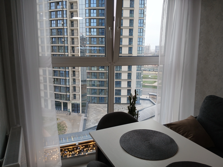 Уютная студия в новом доме Минск Мира, район Мировых танцев, дом Ча-Ча-Ча. Недалеко от центра и ж/д вокзала. Удобное месторасположение - начало ул.Аэродромная, рядом здание старого аэропорта, ул.Чкалова. До центра 4 км, до ж/д вокзала 3 км. В километре - большой тц Аутлет. Продуктовый магазин в соседнем здании, через дорогу круглосуточный магазин в Лукойле.