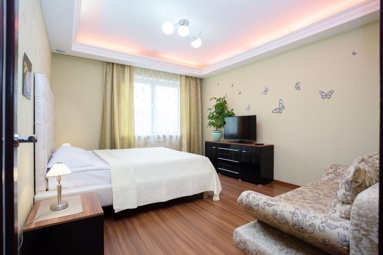 В квартире проведен капитальный ремонт,новая кухня, качественная мебель, деревянная кровать с новым ортопедическим матрасом (1,6 м).
