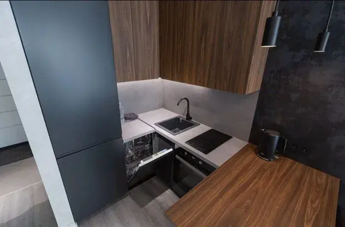Апартаменты оснащены техникой в рабочем состоянии, удобной кроватью и диваном, чистое постельное, полотенца, столовые приборы, кофе чай, одноразовые гигиенические принадлежности, обязательный атрибут.