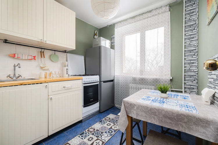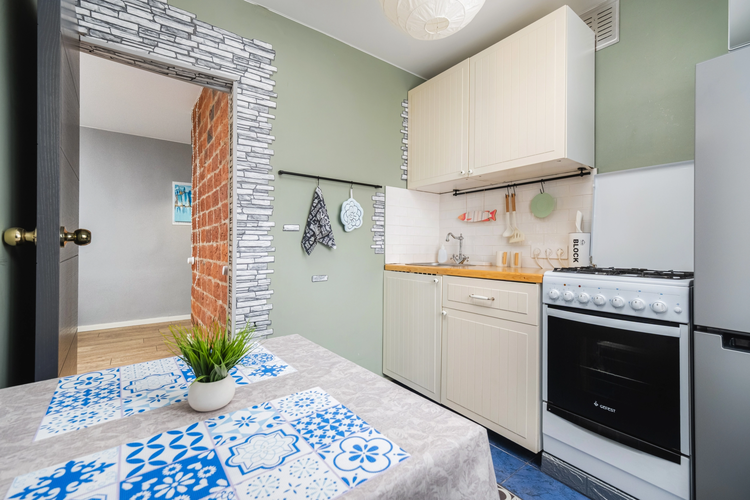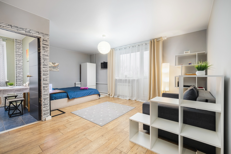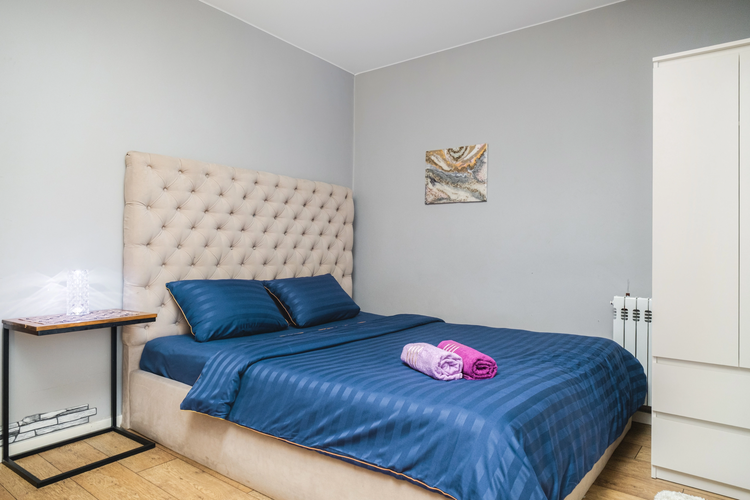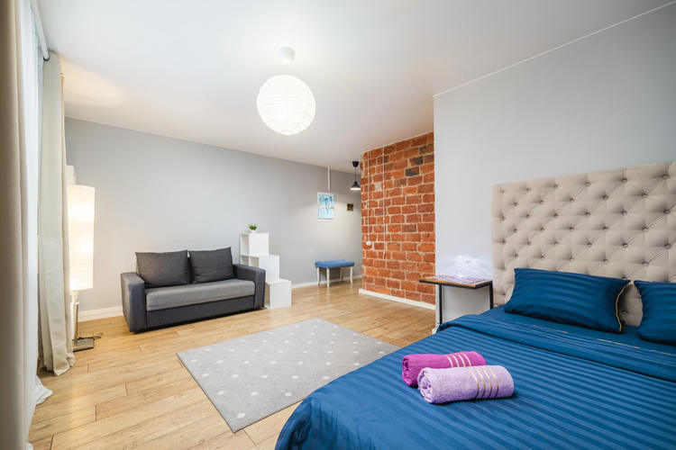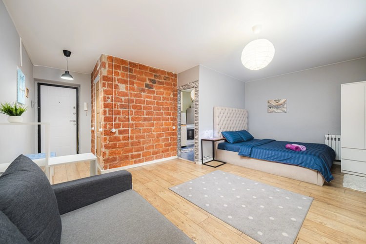 В Вашем распоряжении отдельная квартира с уютным ремонтом. Обращаем Ваше внимание, что дверь в а кухню не закрывается, т.к. квартира проектировалась как студия! Удобная двуспальная кровать шириной 160 см, новый двухспальный раскладывающийся диван, шкаф, телевизор Smart TV, высокоскоростной безлимитный Wi-Fi. Уборная комната с ванной, стиральная машина, утюг, гладильная доска, свежие полотенца, средства гигиены, фен. Кухня - с мебелью, газовая плита, холодильник, стол с тремя посадочными местами, СВЧ-печь, свежая посуда и столовые приборы.