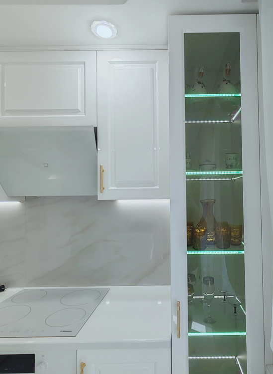 Современная белоснежная кухня с кофеваркой DeLonghi (несколько видов кофе и чая, сахар), тарелки и чашки из фарфора! Индукционная варочная панель с 4 конфорками и все необходимое, в том числе для длительного проживания.