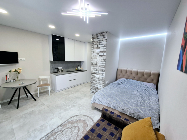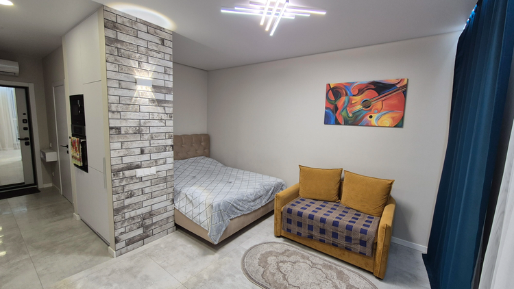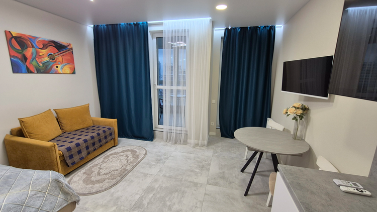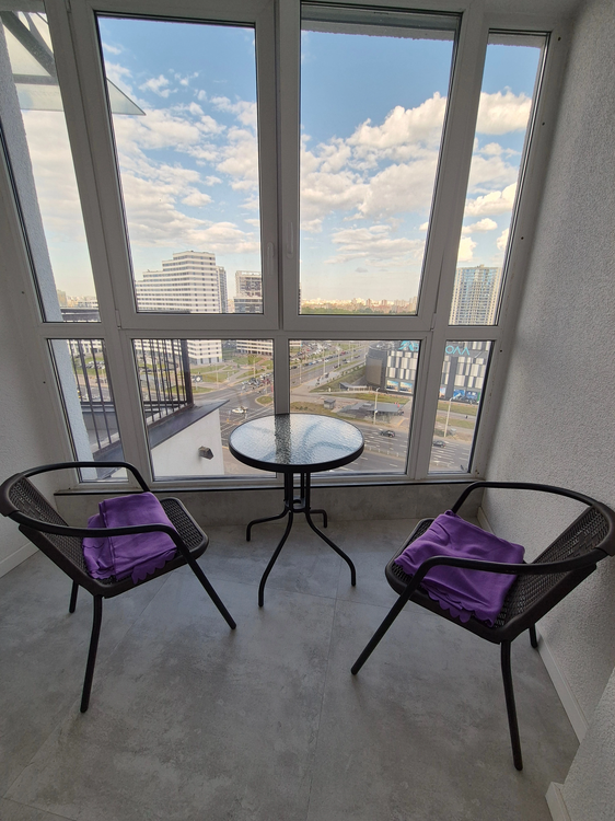 Видовая студия в ЖК Минск мир на 12 этаже, с шикарным видом на жилой комплекс и с продуманным до мелочей дизайнерским ремонтом.