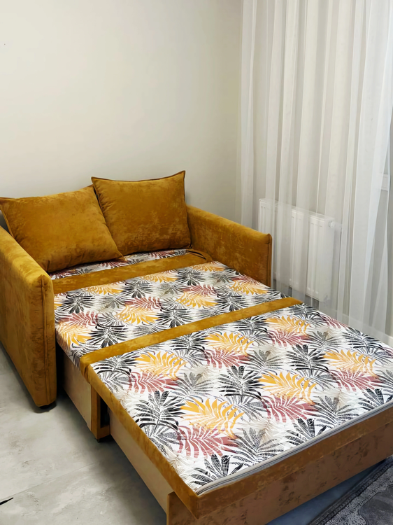 1. Двуспальная кровать 160 см + диван для 2 детей либо 1 взрослого, постельное белье.