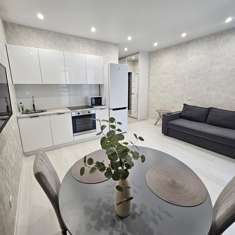 В квартире есть все необходимое для проживания: WI-FI,удобный ортопедический двухспальный диван-кровать,телевизор , стиральная машина, духовка, СВЧ печь, фен, пылесос, холодильник, посуда, чайник,постельное бельё.полотенца.