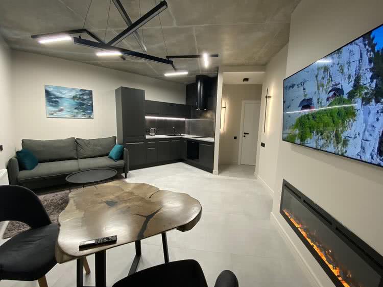 Новая мебель, бытовая техника, интернет Wi-Fi. , 2 Смарт ТВ. Окна оборудованны блэкаут рольшторами. Для курящих есть балкон. Апартаменты подходят для пар, одиноких путешественников , пары с ребёнком. Компании, вечеринки, мероприятия строго запрещены!!! Отчётные Документы, быстрое заселение. Кондиционер. Стоимость от 60$ зависит от кол-ва человек, сезонности. Выходные и праздничные дни цены договорные.