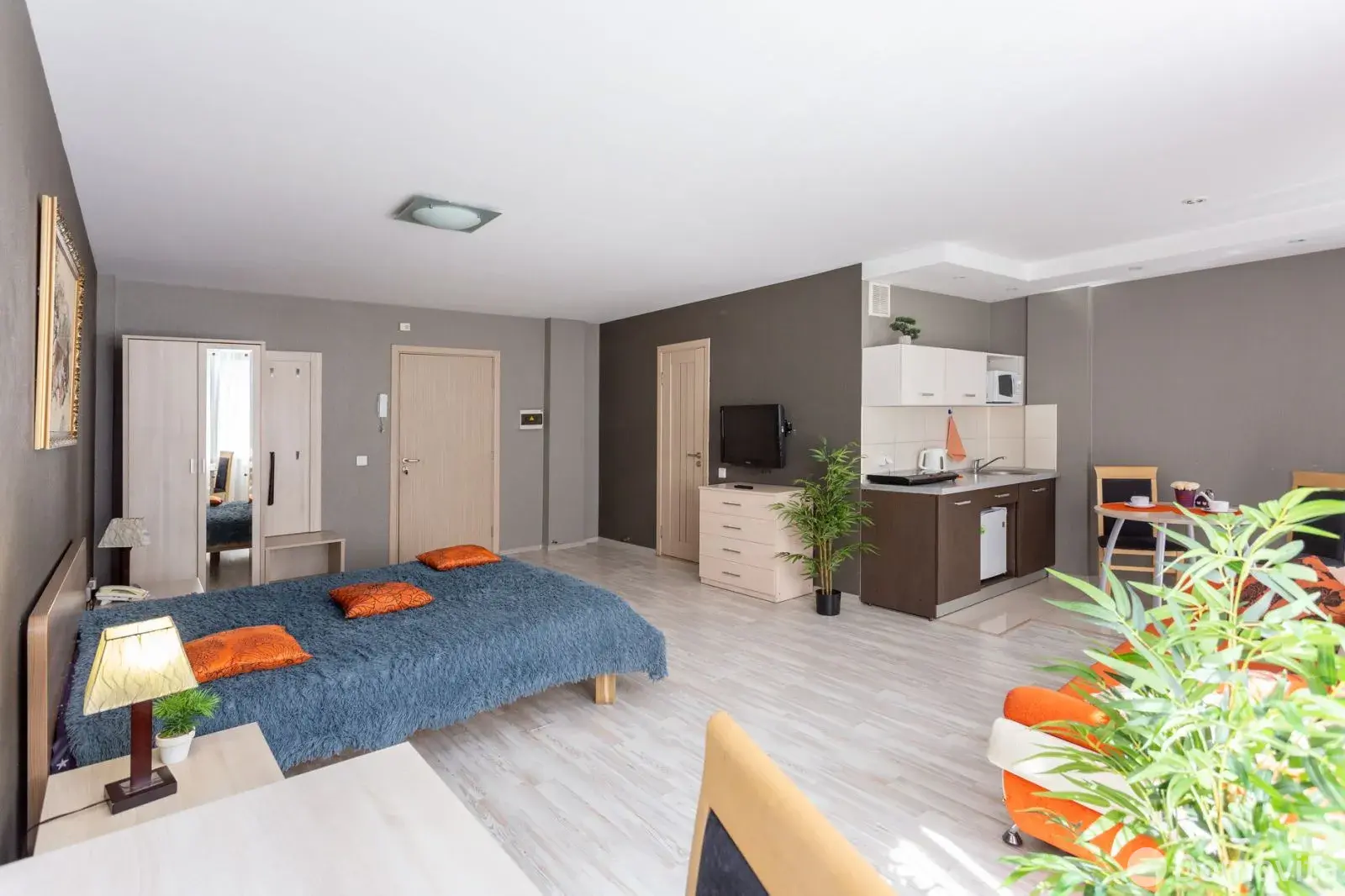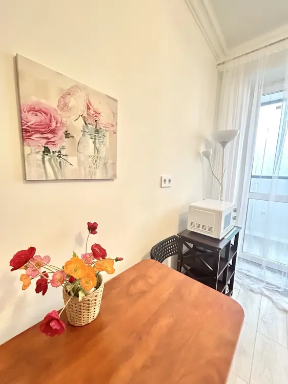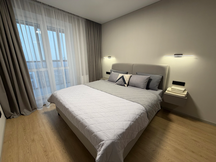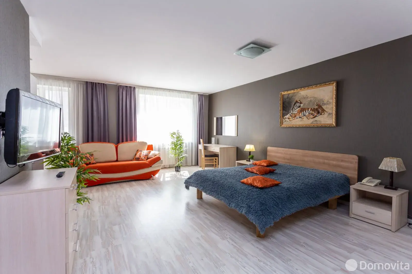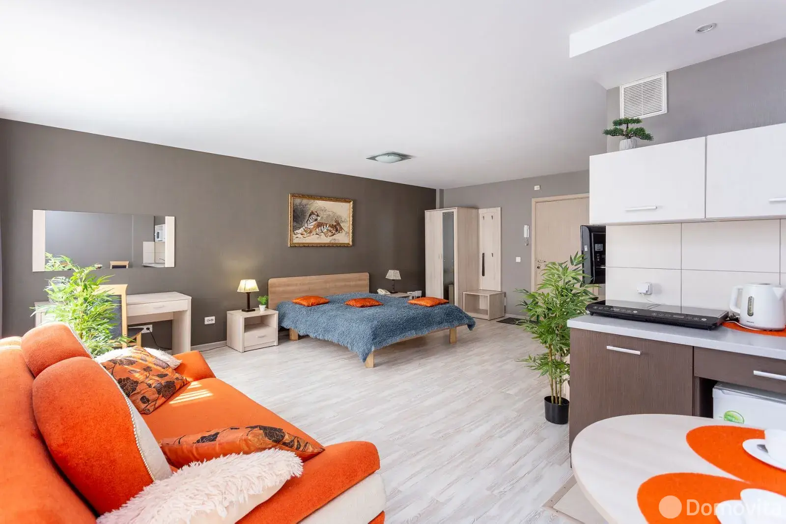 Просторная студия. Оборудована всем необходимым: двуспальная кровать, диван, индукционная плита, ТВ, интернет, полотенца, постельное бельё, косметические средства, кофе, чай. Видеонаблюдение и пост охраны в доме, тишина и покой. Удобное расположение, находится в 5 минутах от ст. м. Грушевка, развитая инфраструктура, рядом Ж/Д вокзал, Немига, пр-т Независимости, диагностический центр, 4ая больница, офтальмологический центр "Voka".