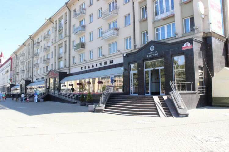 Рядом с домом расположены казино Карат и XO club, торговые центры ЦУМ, Силуэт, Импульс, продуктовый магазин Евроопт, масса интересных ресторанов, баров и кафе (Лидо, Гвоздь, Bella Rosa, Джомолунгма, Clever Irish Pub, Pub Club Mixx, Хопс).