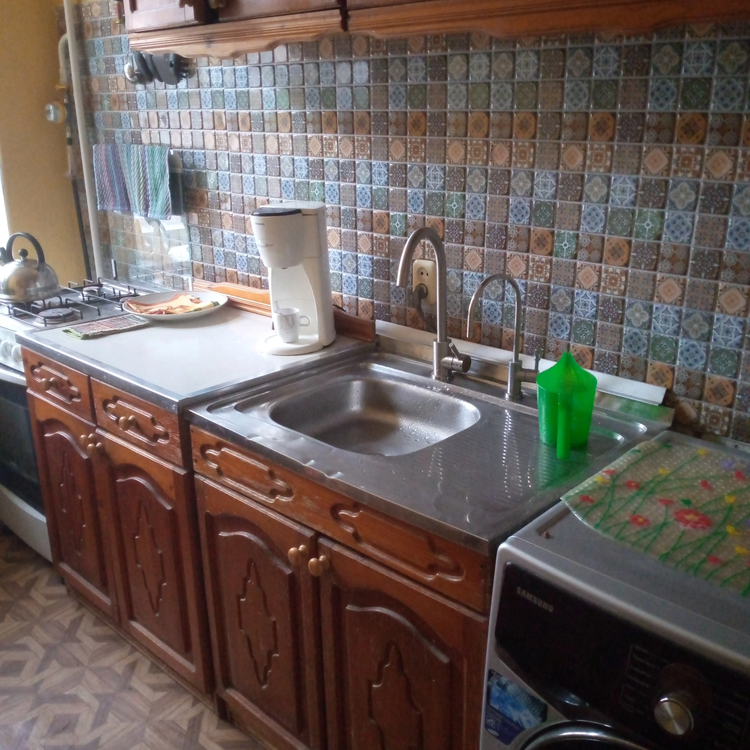 В квартире очень жарко, т.к. установлены ссср-овские чугунные батареи. Центральное городское отопление и водоснабжение (не газовая колонка). Новая немецкая сантехника. Большая стиральная машина Samsung на 7 кг без сушки.