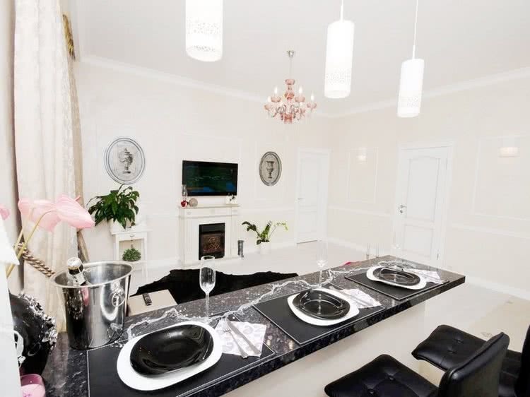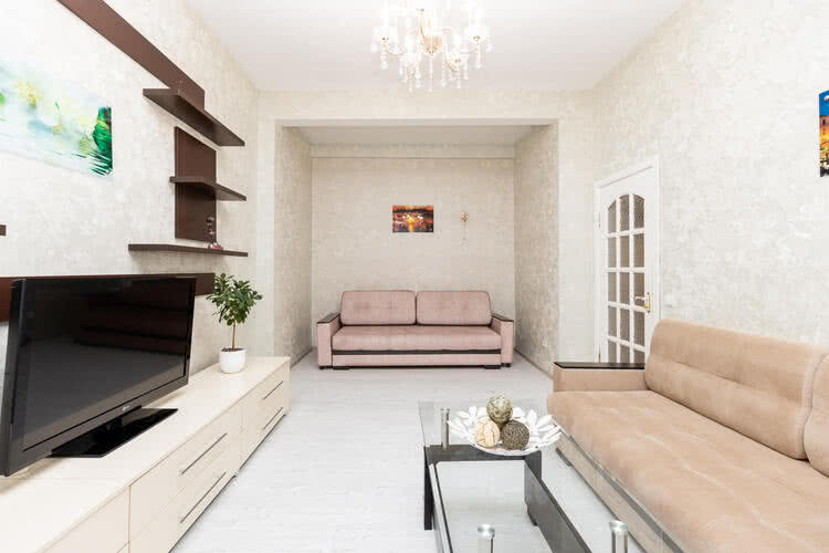 Новая квартира с 2 комнатами в историческом центре Минска. Современный ремонт. Красивый вид из окон, лепнина, высокие потолки. Сталинка. Окна квартиры выходят во двор и на пр.Независимости. Для вашего удобства в квартире есть кухонная посуда, чайник, СВЧ, стиральная машина, фен, гладильная доска, утюг. Телевизор SMART-TV. WI-FI интернет.