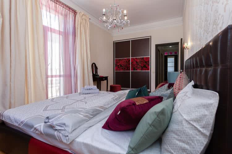 В квартире имеется все необходимое для комфортного проживания и вся бытовая техника известных производителей: фен, утюг, стиральная машина, посудомойка, печь СВЧ, газовая плита, электрочайник, мебель, ЖКИ TV, интернет WIFI. Площадь 65 м/2, высота потолков 3,20 м. Две раздельные комнаты.