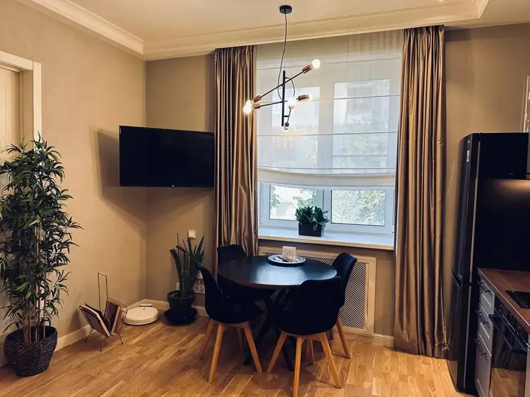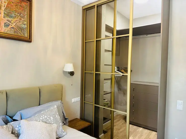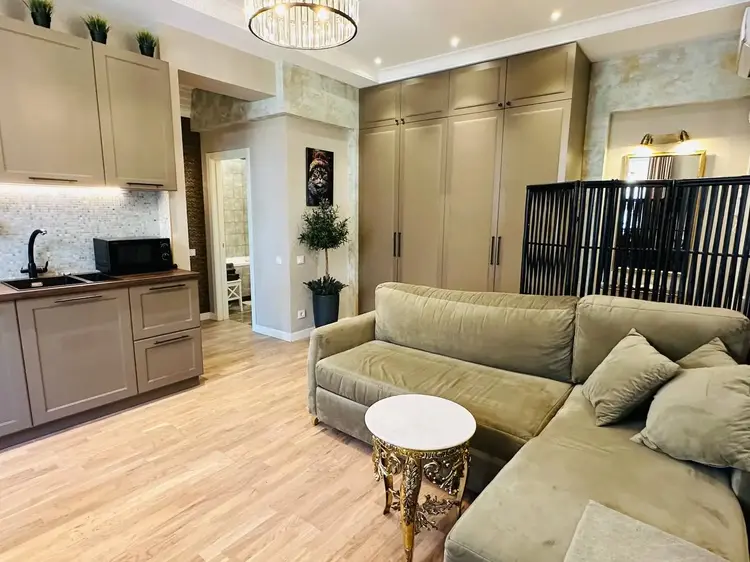 Премиальные стильные апартаменты. Высокие потолки, дизайнерская мебель. Здесь вы ощутите все преимущества современного комфортабельного жилья. К вашим услугам — весь перечень необходимой бытовой техники. Для связи с миром — Wi-Fi, кабельное телевидение. Имеет две комнаты: гостиную —студию изолированную спальни . Удобная современная дизайнерская мебель, в спальне — двуспальная кровать с ортопедическим матрасом. В гостиной двуспальный диван. Кухня оборудована по всем требованиям современного быта. Желаем приятного отдыха!