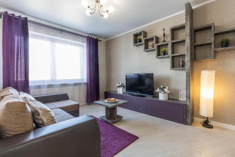Эти апартаменты находятся в центре города в новостройке. В апартаментах выполнен современный ремонт в соответствии с последними модными тенденциями. К Вашим услугам предоставляется уютная гостиная с мягкой мебелью и ЖК-телевизором, объединенная с функциональной кухней. Имеется кондиционер, вся необходимая мебель, микроволновка, холодильник, электрочайник, посуда для приготовления пищи. Светлая спальня с большой кроватью и телевизором подарит Вам тепло и уют домашнего очага. Для Вашего комфорта мы предусмотрели наличие некоторых приятных мелочей: безлимитный интернет Wi-Fi, бойлер, средства личной гигиены, полотенца, фен, утюг, гладильная доска, кофе-чай и пр.