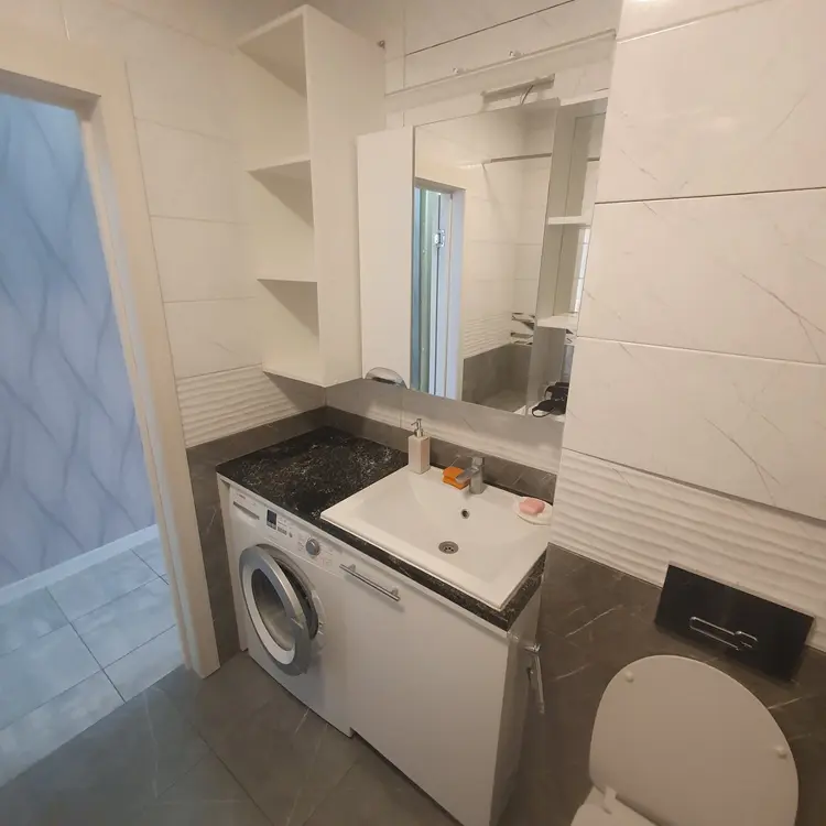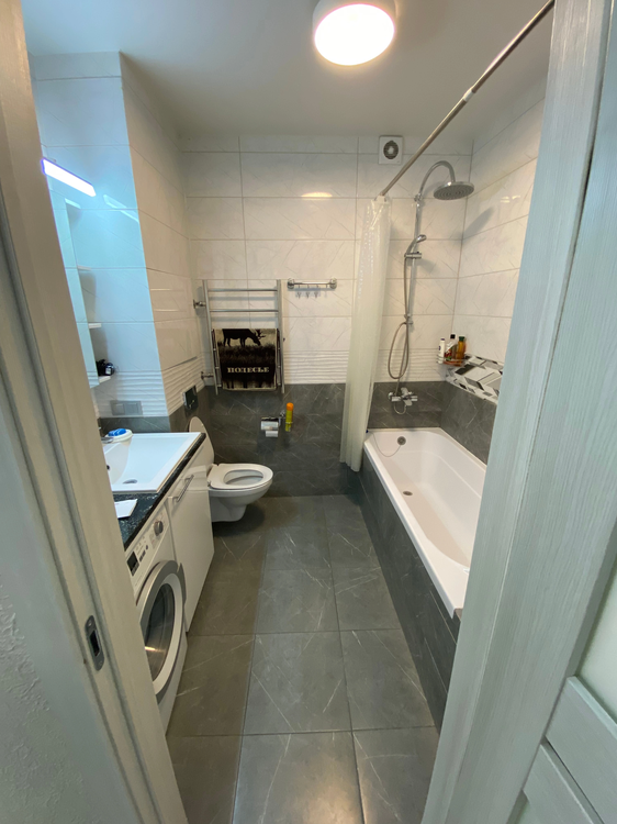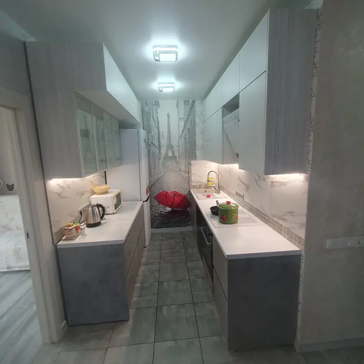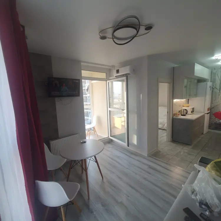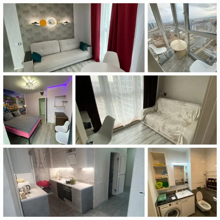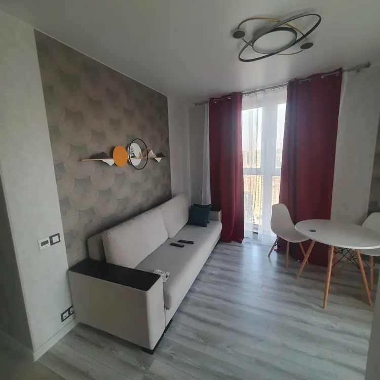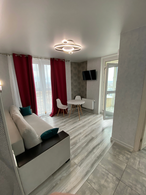 в квартире:Wi FI, smart TV,вся необходимая техника: холодильник,стиральная машина, индукционная плита, СВЧ, утюг/глад.доска, фен, кондиционер, посуда, столовые приборы.