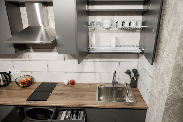 Техника: ТВ, высокоскоростной Wi-Fi, холодильник, современная электрическая плита, СВЧ-печь, стиральная машина, утюг и гладильная доска.
