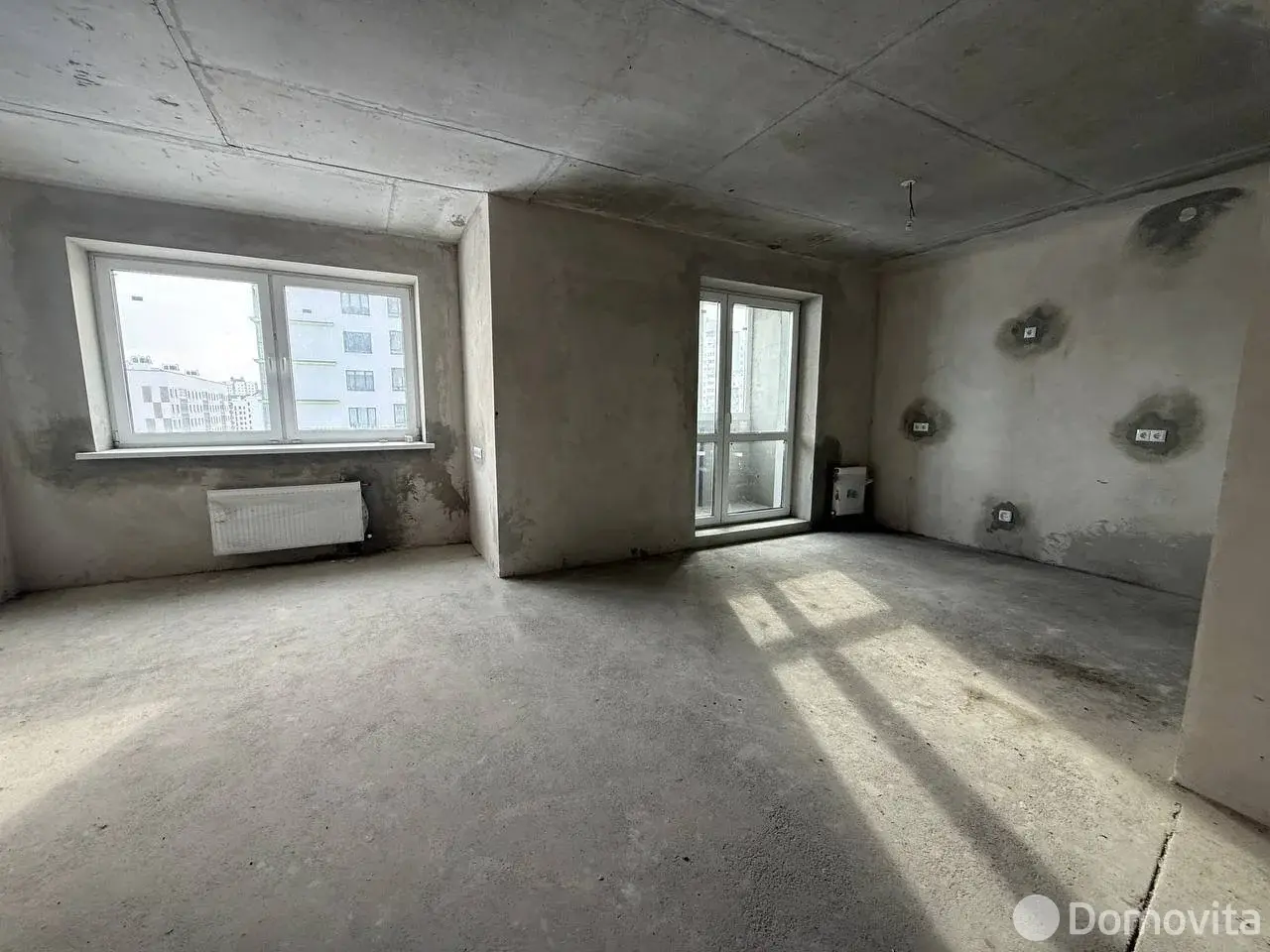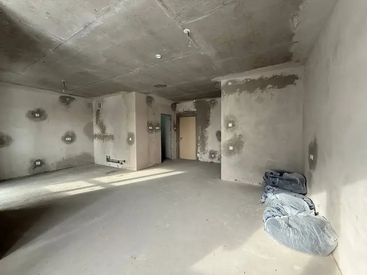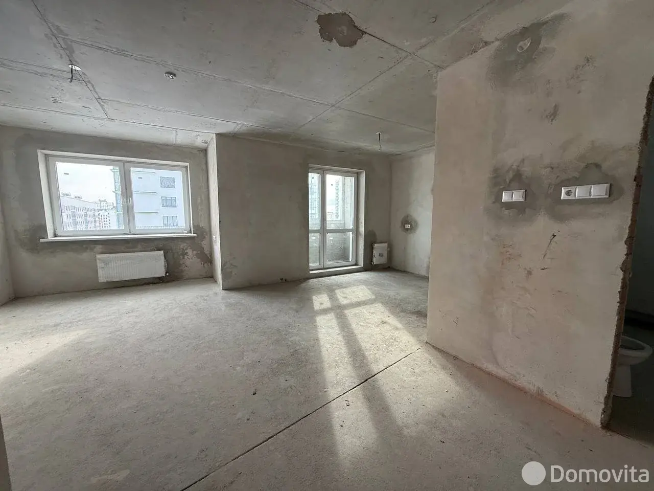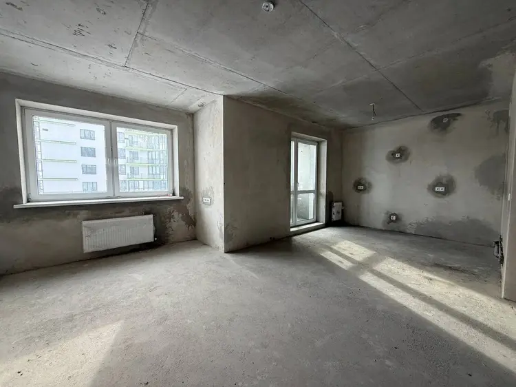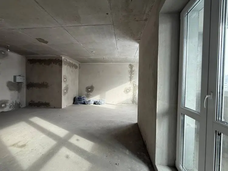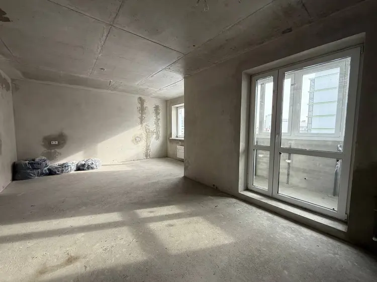 Стены оштукатурены. Имеется бетонная стяжка. Разведены полностью отопление и электрика, установлены розетки и выключатели, разводная коробка с автоматами в квартире.