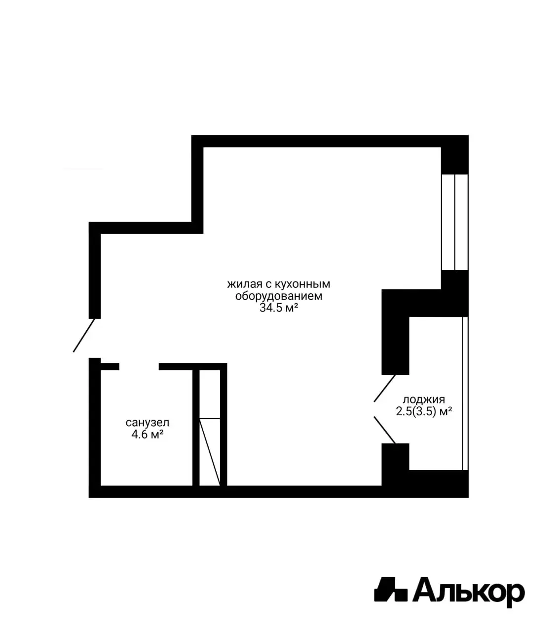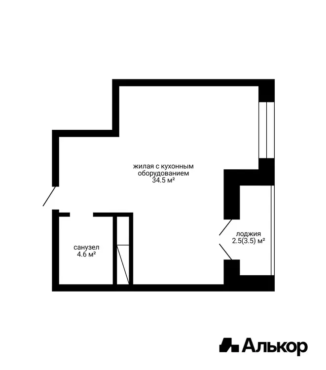 Площадь по СНБ 41,6 м2.