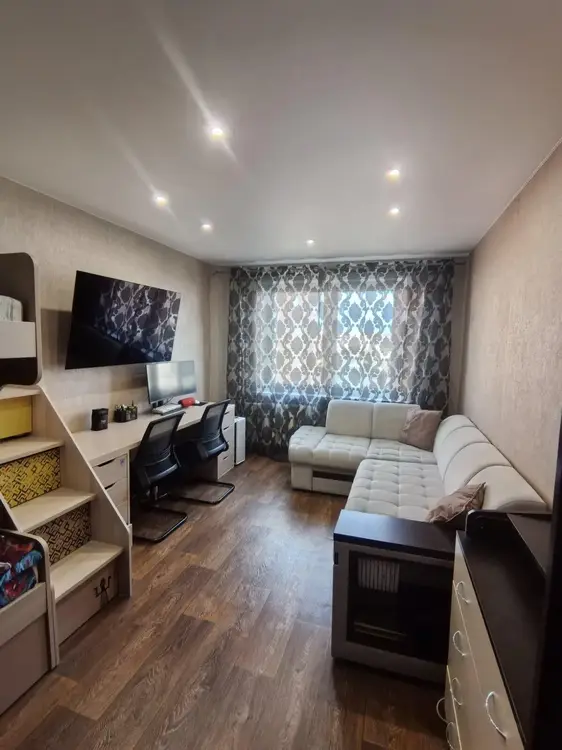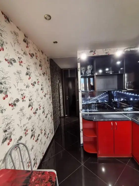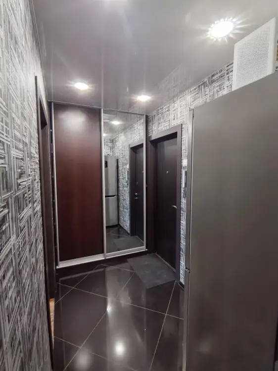 На полу линолеум, в коридоре, ванной и туалете плитка, сантехника новая. Во всей квартире установлены стеклопакеты. На балконе оборудованы места для хранения. В комнате установлен шкаф-купе. В квартире – натяжные потолки. Зональное освещение.