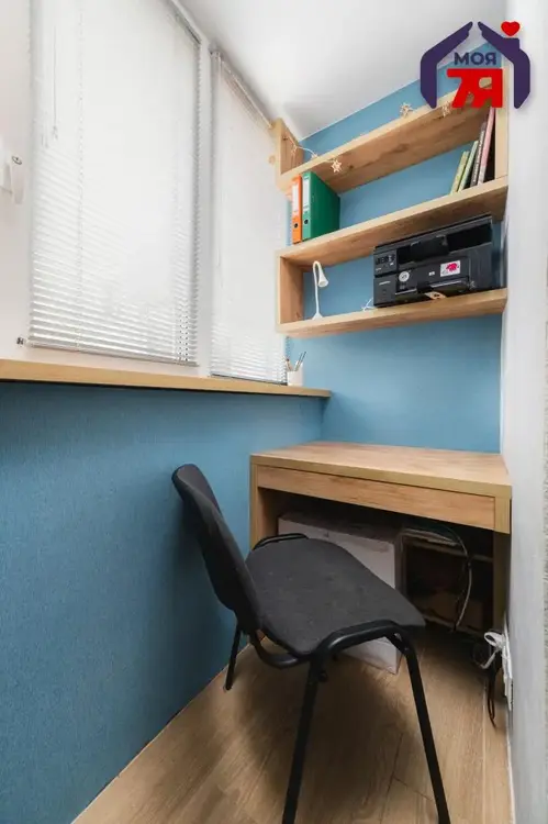 - Гостиная оформлена с использованием ламината 33 класса, декоративных обоев, камня и паркетной доски. Балкон обустроен под рабочий кабинет с тройными стеклопакетами и теплым полом. Окна выходят на живописный сквер. Для поддержания микроклимата установлен кондиционер.