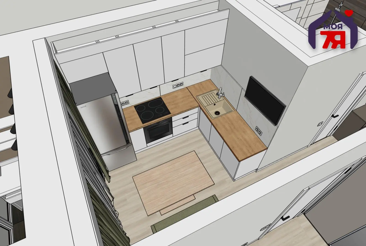 Просторная кухня 8,7 м² - оснащена встроенным современным гарнитуром, посудомоечной машиной и новой техникой. Здесь приятно готовить и проводить время.