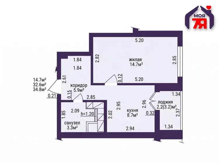 Общая площадь - 34,8 м². Квартира продумана до мелочей и идеально подойдёт как для комфортного проживания, так и для выгодной инвестиции.