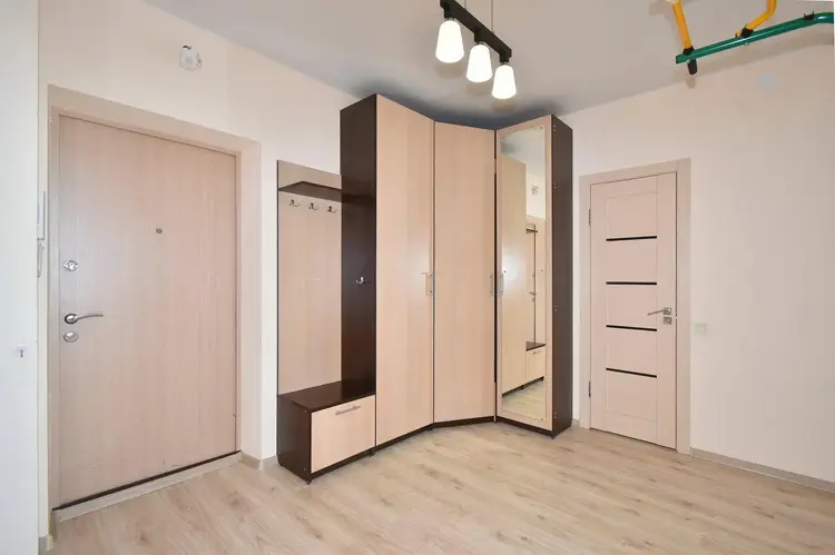 -вместительный коридор (10,9 м.кв.) позволит разместить все шкафы и организовать необходимые места хранения, что увеличит пространство жилых комнат, позволяет п использовать их только для спальных мест и организации отдыха и проживания.