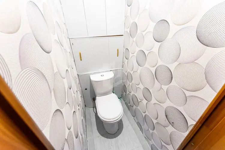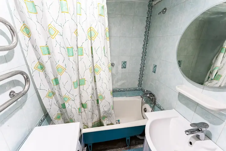В квартире раздельный санузел. Стены и пол в ванной комнате и туалете облицованы плиткой.