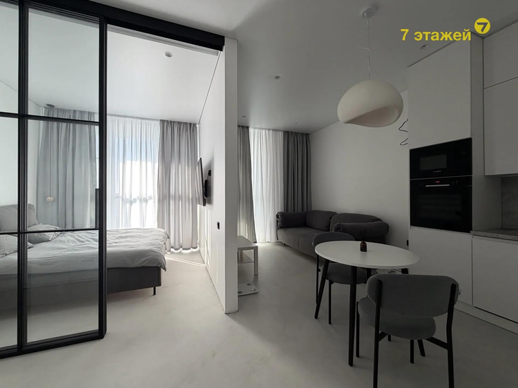 Современная планировка включает гостиную, рабочую зону, гардеробную и уединённую спальню с прекрасным видом из окна, создающего неповторимую атмосферу. Квартира оборудована всей необходимой техникой Bosch и предлагается с мебелью, изготовленной на заказ из МДФ. Крашеные стены, пол из микроцемента. Для Вашего комфорта в квартире установлен бойлер, выведена трасса под кондиционер и установлена спутниковая тарелка.