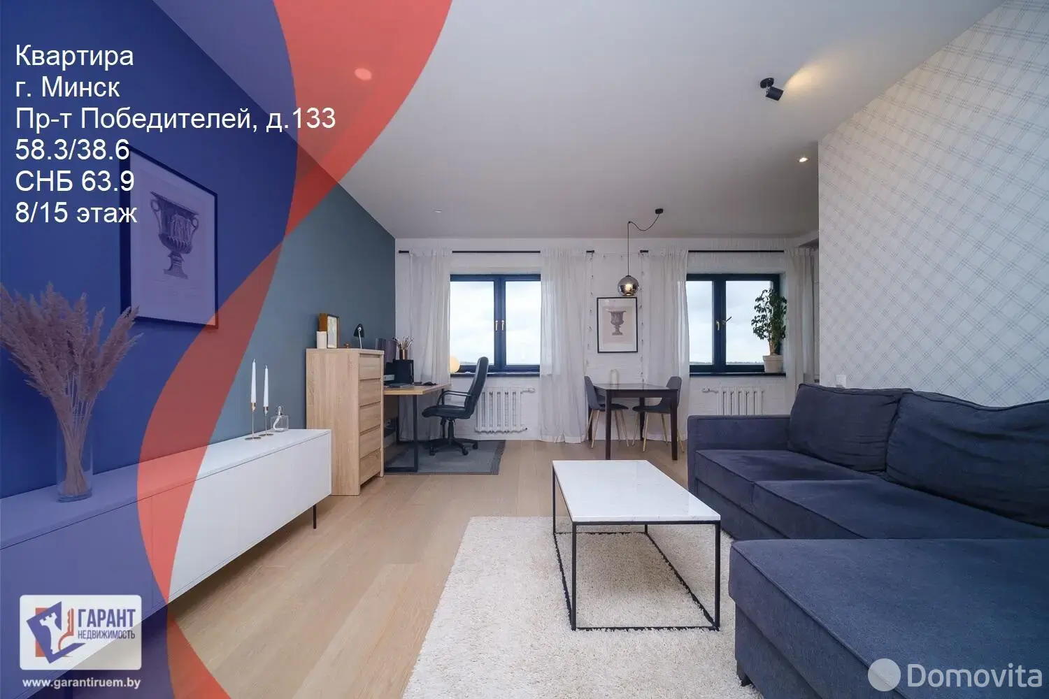 Комфортная планировка (63,9кв.м):- просторная кухня-гостиная с выходом на балкон,- спальня (19,7 кв.м.) с гардеробной, лоджией и панорамным видом на водохранилище Дрозды,- коридор с местами для хранения,- совмещенный санузел.