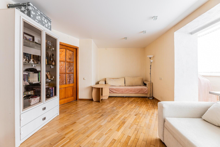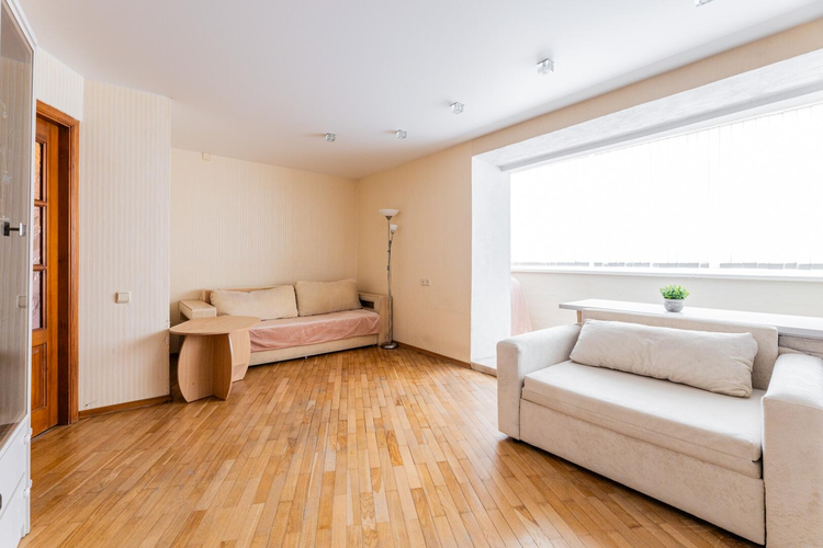 Толстые кирпичные стены надёжно сохраняют тепло, средний этаж, солнечная сторона. Из окна кухни вид во двор, а окна комнаты смотрят на парковую зону.