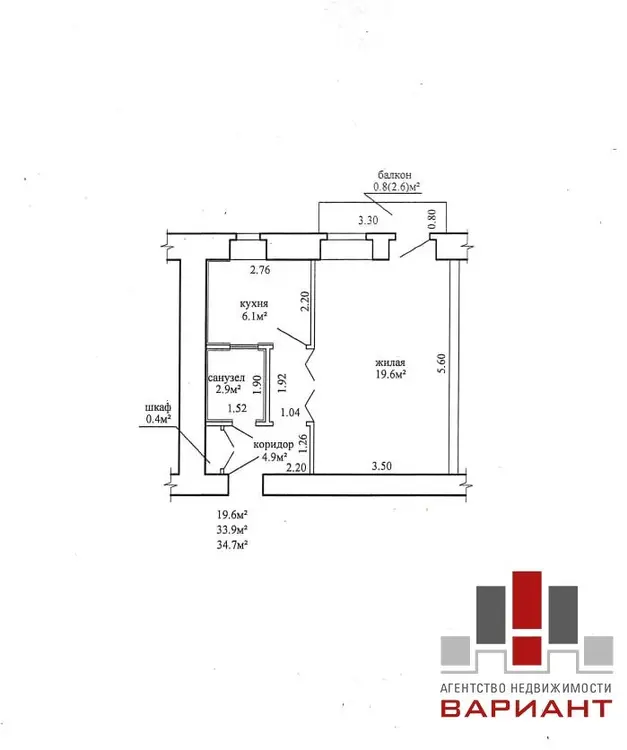 * Площадь: Общая площадь по СНБ составляет 34.7 м².