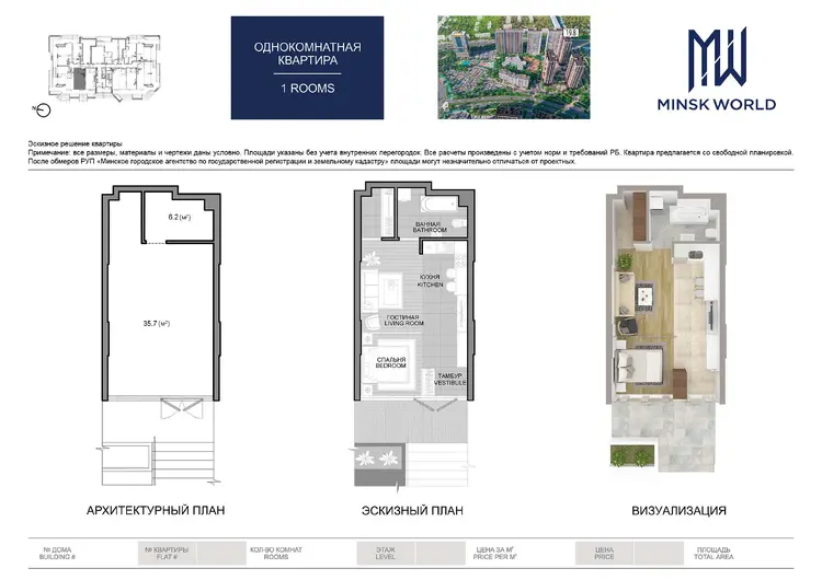 • Планировка: функциональная студия с зонированием.