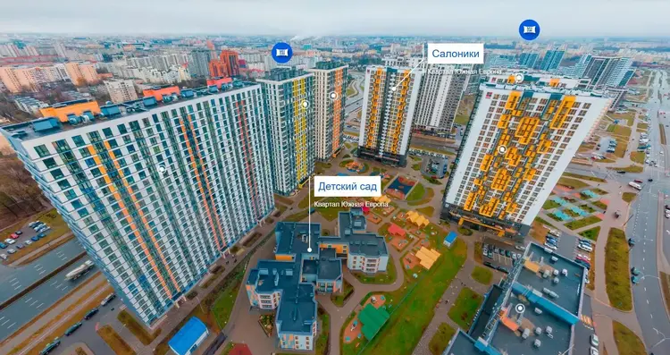 В каждом квартале современные школа или сад с бассейнами и современным оснащением