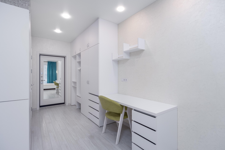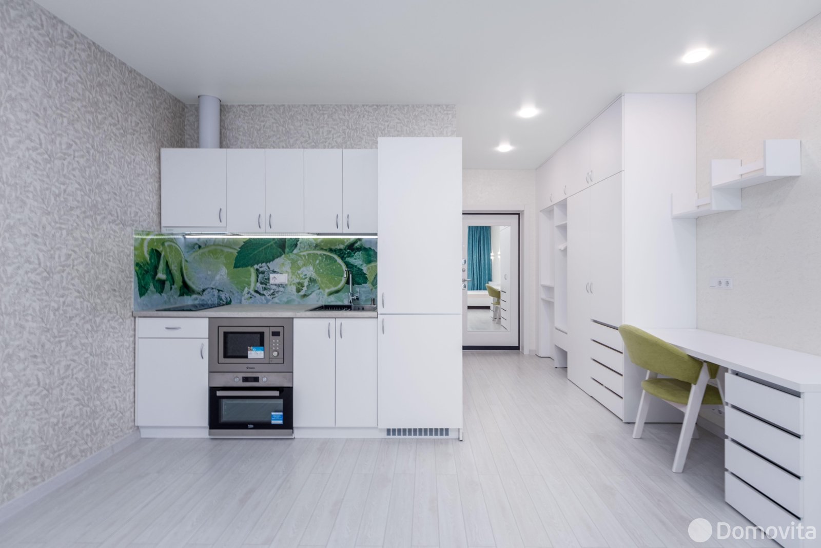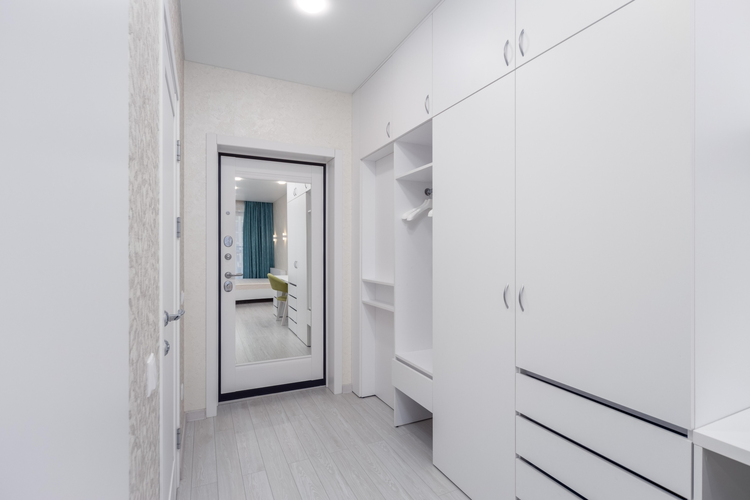 • Мебель и техника: Кухня оборудована встроенной техникой. В прихожей — вместительный встроенный шкаф.
