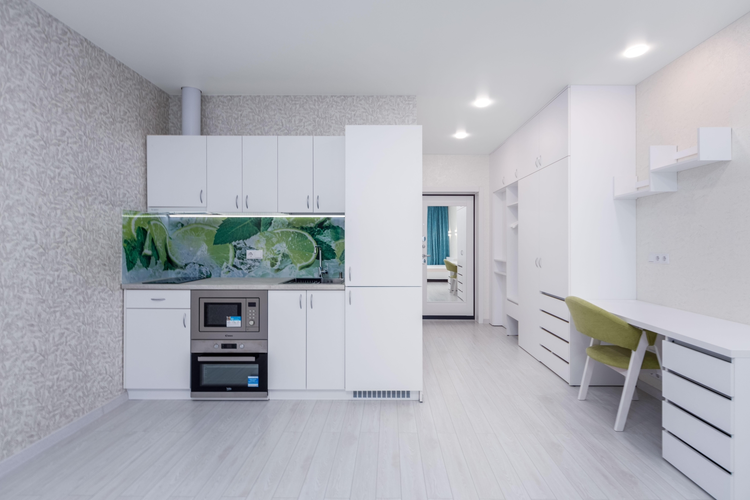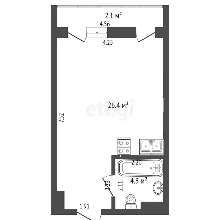 • Просторная студия: Свободная планировка (кухня-гостиная 26,4 кв.м). Общая площадь 31,3 кв.м.