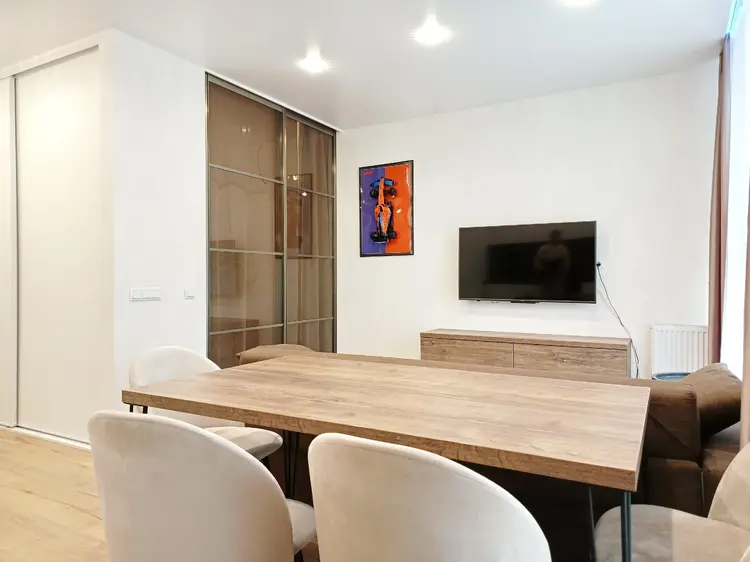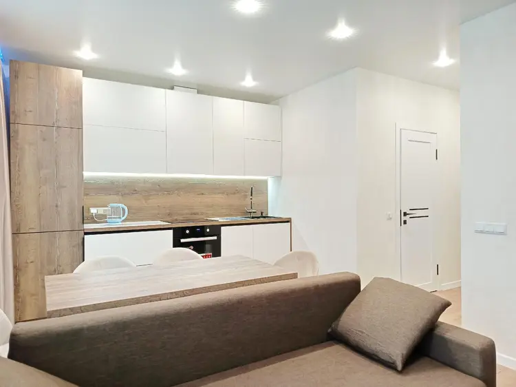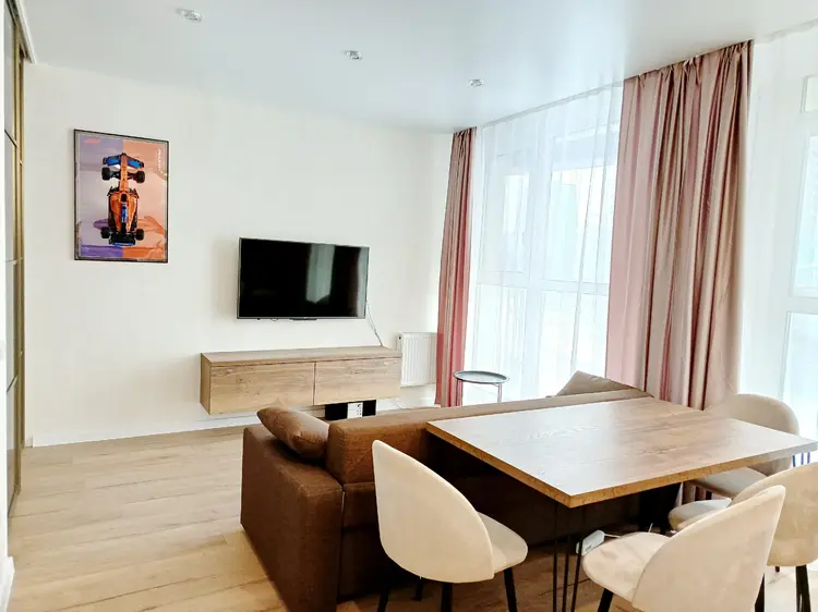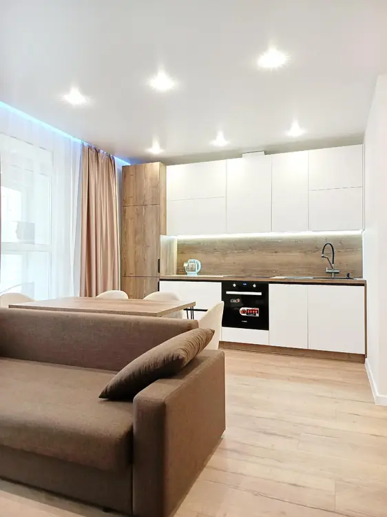 В квартире выполнен дорогостоящий ремонт. Премиум материалы и мебель. Брендовая техника последних поколений. Фасады Egger, фурнитура Blum, доводчики.
