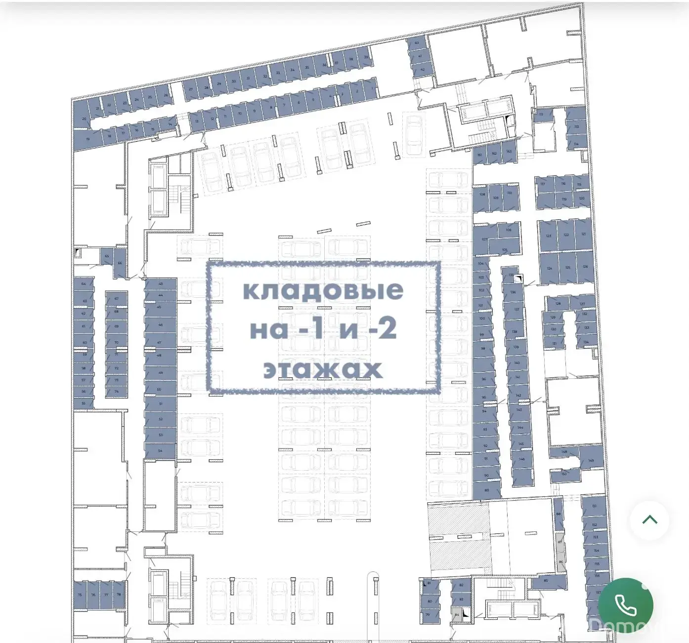 Также в зоне паркинга предусмотрено 194 кладовых помещения, где удобно хранить сезонные вещи, автомобильную резину и многое другое.
