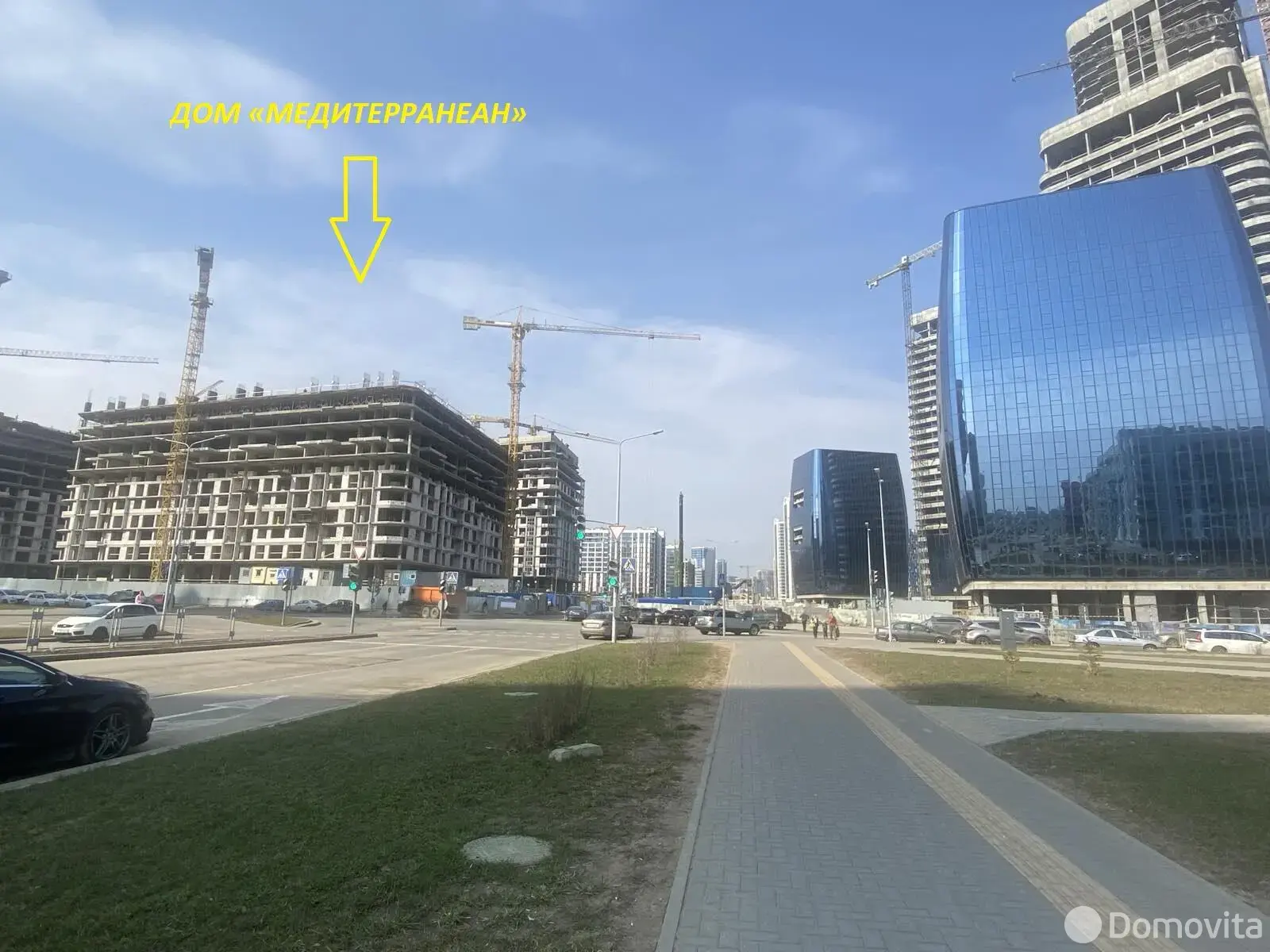 Дом «Медитерранеан» это 15-этажное здание, которое является важной частью единого архитектурного ансамбля из шести домов. Стильное решение фасадов в цвете морской волны, использование тонированного остекления и выразительный силуэт здания делают его заметным акцентом квартала. Главными фасадами здание ориентировано на ул. Игоря Лученка и ул. Братская.