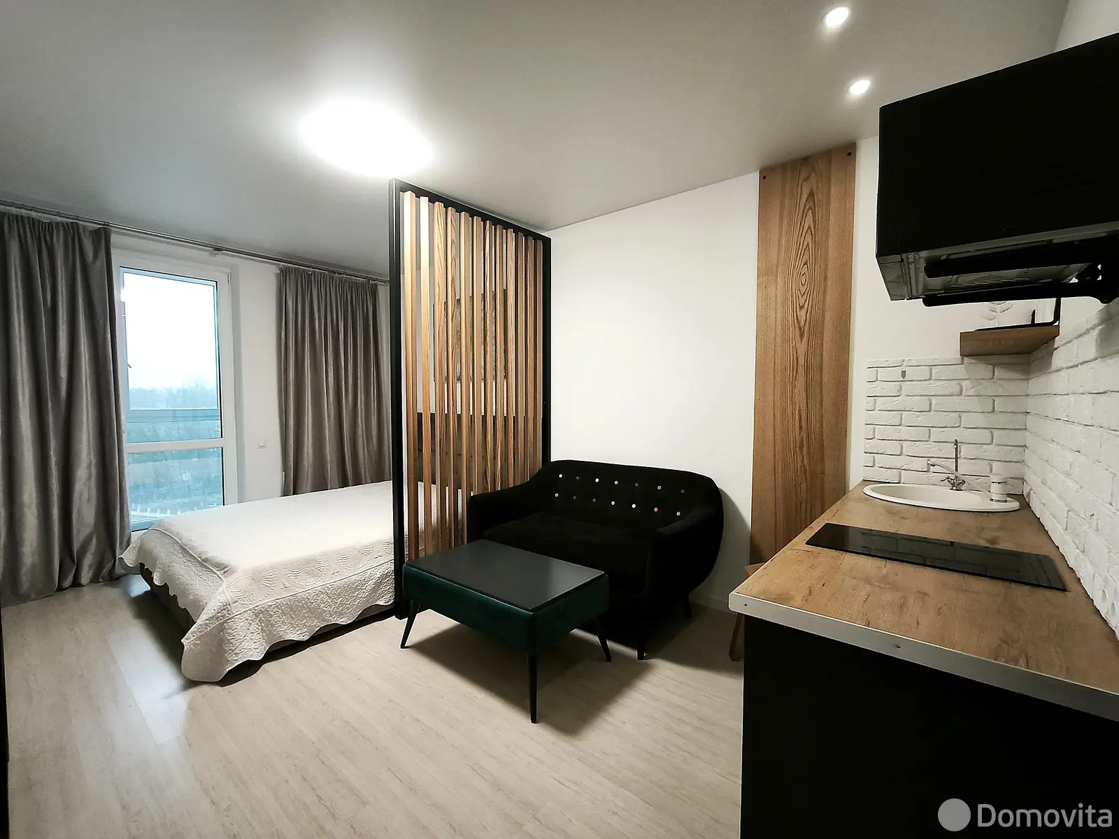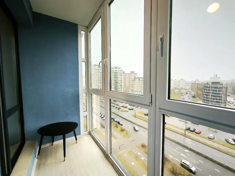 Квартира с панорамными окнами на 9-м этаже с мебелью и бытовой техникой полностью готова к проживанию. Реализовано грамотное зонирование пространства с выделенным спальным местом, гардеробной, совмещенным оборудованным сан узлом, прихожей и большой лоджией. Площадь по СНБ – 29,6 кв.м.. Высота потолков – 2,73 м