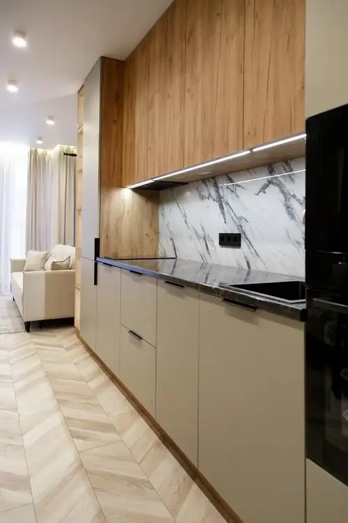 В ней есть все для того, чтобы обеспечить комфортное проживание: кухня со встроенной бытовой техникой, включая посудомоечную машину, огромная система для хранения Ваших вещей, а также просторная ванна является незаменимым преимуществом. В отличие от душа Вы сможете расслабиться в полной мере после напряженного рабочего дня.