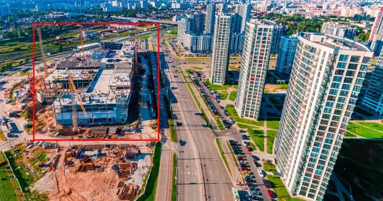 Зеленая парковая зона, международный финансовый центр и крупнейший торговый центр Авиа Молл в центре комплекса.