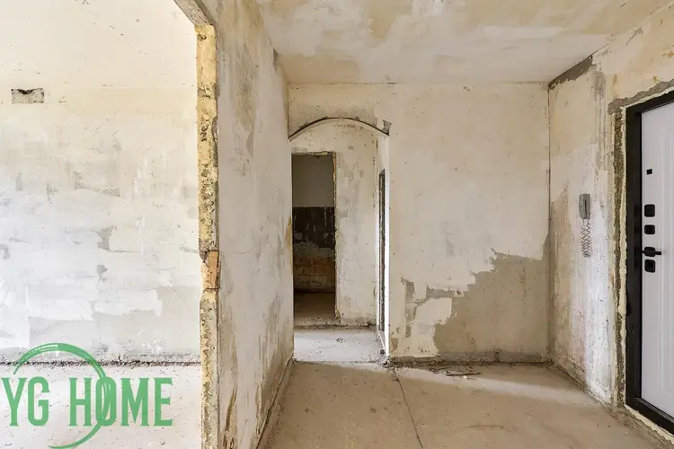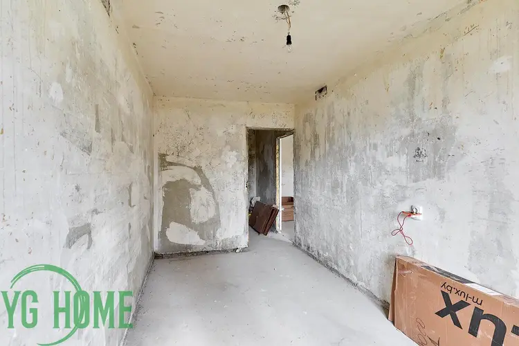 - Полный демонтаж: Квартира полностью очищена от старых покрытий, полов и дверей. Вы видите реальное состояние стен и перекрытий — никаких «сюрпризов» под обоями.