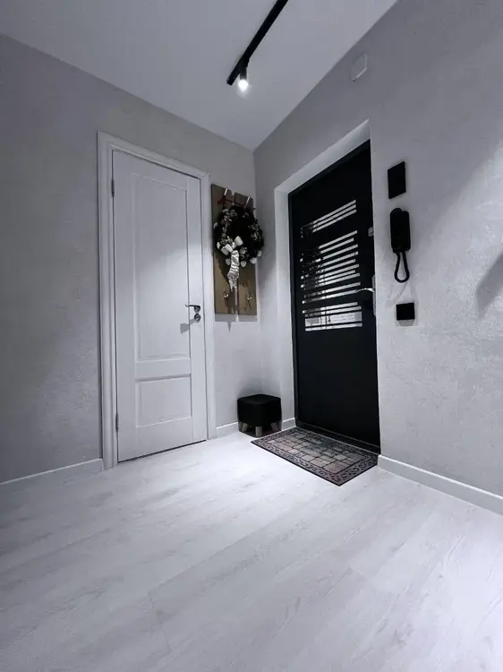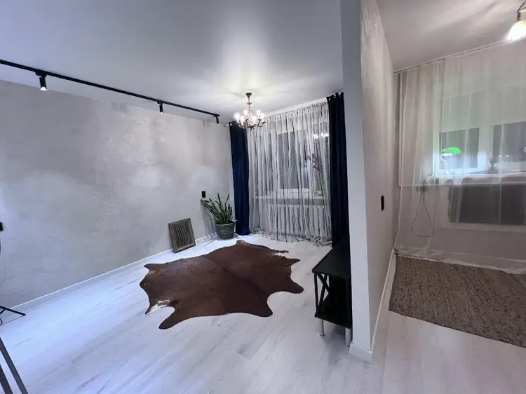 В квартире сделан хороший ремонт, металлическая дверь, пластиковые окна, ламинат одним ковром,просторная комната разделена на зоны - трековым освещением , уютная небольшая кухня-ждет ваши мебельные предпочтения. Облицованная плиткой ванная комната, размер установленной ванны - 1.70.