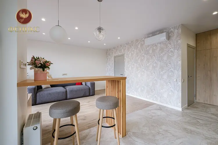 В квартире сделан новый ремонт. При отделке использовались дорогие и качественные материалы. Полностью укомплектована мебелью и бытовой техникой, что позволит Вам сразу заселиться без дополнительных финансовых вложений. Установлена стильная кухня. Столешница из камня. Духовой шкаф с функцией самоочистки, варочная панель, посудомоечная машина, встроенный холодильник с морозильной камерой, вытяжка, встроенная СВЧ, стиральная и сушильная машины. Межкомнатные эмалированные двери. Металлическая входная дверь с видеозвонком. Кондиционер и бойлер. Кладовая 3,3 м2 на цокольном этаже.