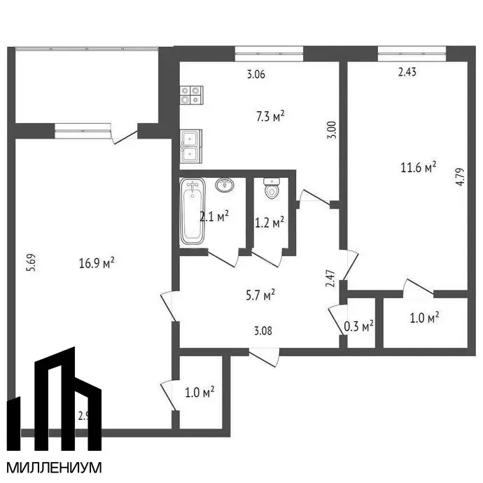 -Просторная застеклённая лоджия с видом на тихий двор - функциональное пространство, которое можно использовать как кабинет или зону отдыха. Это дополнительные метры, приносящие комфорт и пользу каждый день.