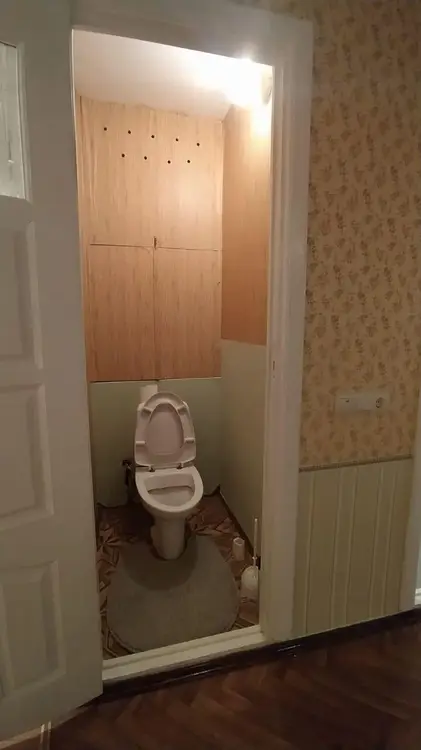 Квартира с нормальным ремонтом все рабочее (без косметического ремонта), на стенах обои, светлая, теплая и уютная, в жилом состоянии: установлены деревяные окна, пол в комнате, прихожей и на кухне – линолеум, в санузле – на полу плитка, стены покрашены. Деревяные двери. Раздельный санузел. Балкон застеклен.