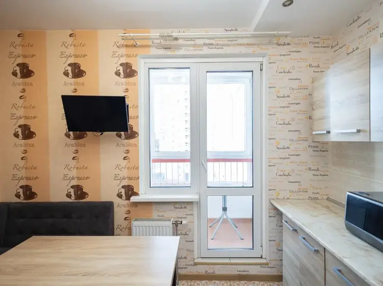 • На вместительной кухне есть застекленная светлая лоджия — место для уютных завтраков и утренних чаепитий