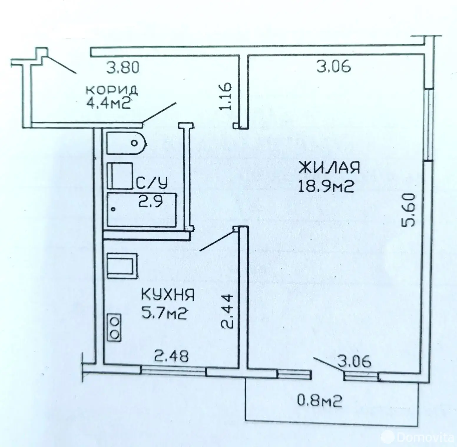 Площадь 32,7/18,9/5,7