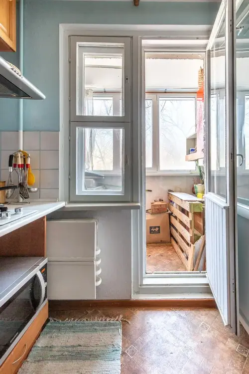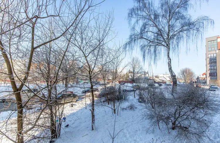 Установлены стеклопакеты. Из окон открывается панорамный вид на зеленую зону.
